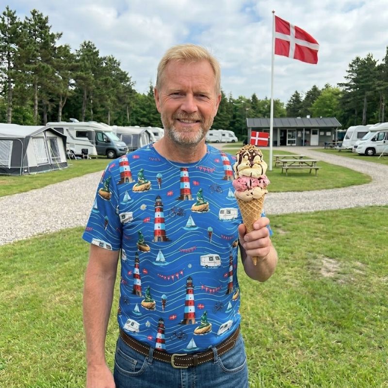 Sypakke til nem herre t-shirt i bomuldsjersey med danske feriemotiver