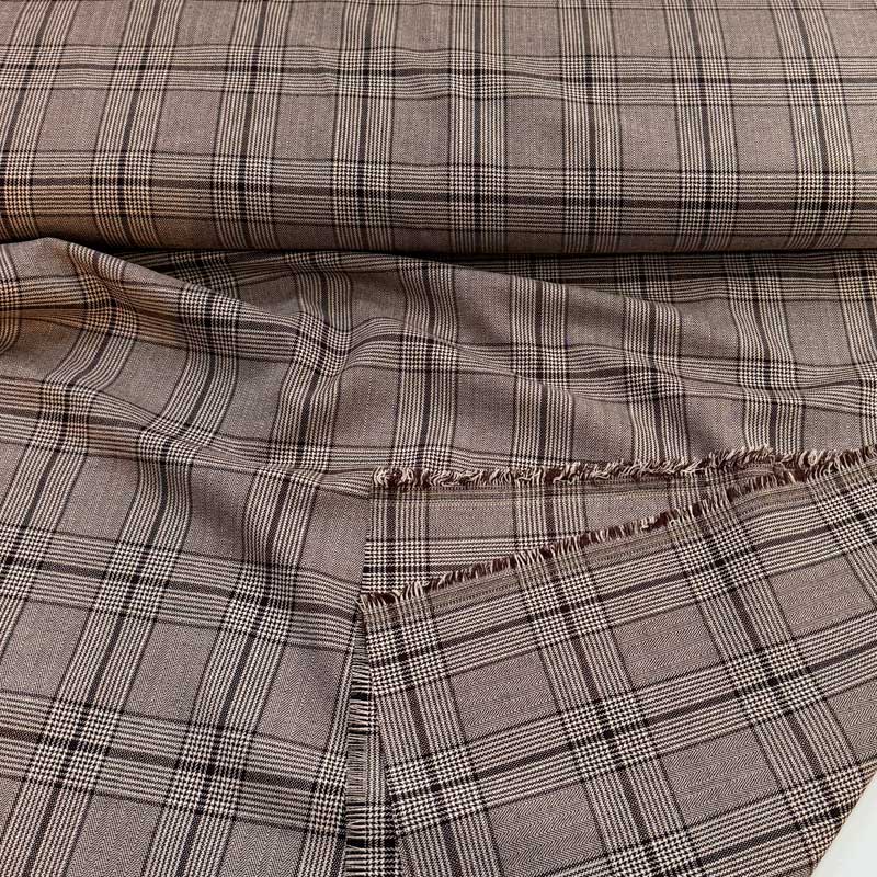 Ternet fastvævet vare med lidt stræk i brunlige nuancer. En fin og lækker vævet kvalitet (260 gr/m2), som falder flot. God til overdele, kjoler, skjortebluser og bukser