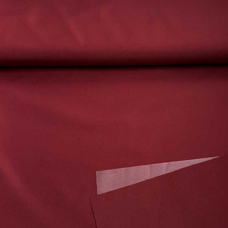 Vandafvisende stof, mørkerød. En meget lækker kvalitet med mange muligheder. Metervaren kan klare et vandtryk op til 1727 mm, derfor egner den sig godt til bukser, jakker, frakker, slag og tasker, til brug i LETTERE regnvejr.